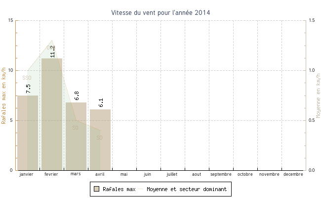 | fevrier | 0.5 °C | 3.9 °C | 14.4 °C | 9.8 °C | 6.3 °C | 1.3 km/h | 11.2 km/h | OSO |